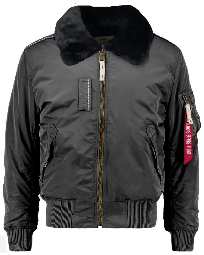 Zimní pánská letecká bunda "bomber" ALPHA INDUSTRIES INJECTOR III se zapínáním na zip, 2 přední šikmé kapsy se zipem, kapsička na tužky na levém rukávu, 2 vnitřní kapsy s druky. Náplety v pase, na rukávech bundy, límec z pravé ovčí kožešiny. Materiál-100% nylon-vnější a podšívka, zateplení-polyester. Doporučená údržba: chemické čištění.