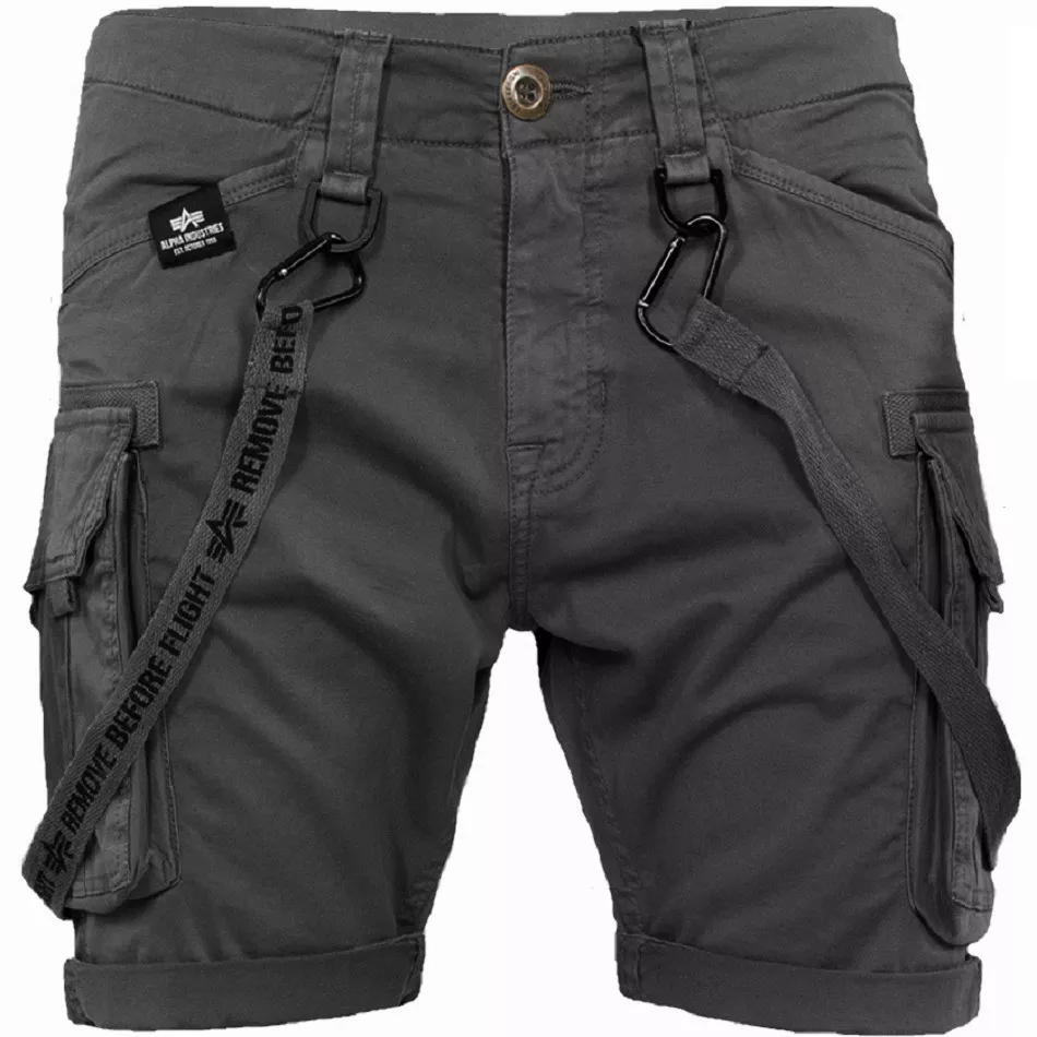 Pohodlné stylové šortky ALPHA INDUSTRIES UTILITY. Dvě přední šikmé kapsy, kapsy zadní a postranní s patkami a druky. Odepínatelné řemeny s karabinami. Materiál: 98% bavlna, 2% elastan.