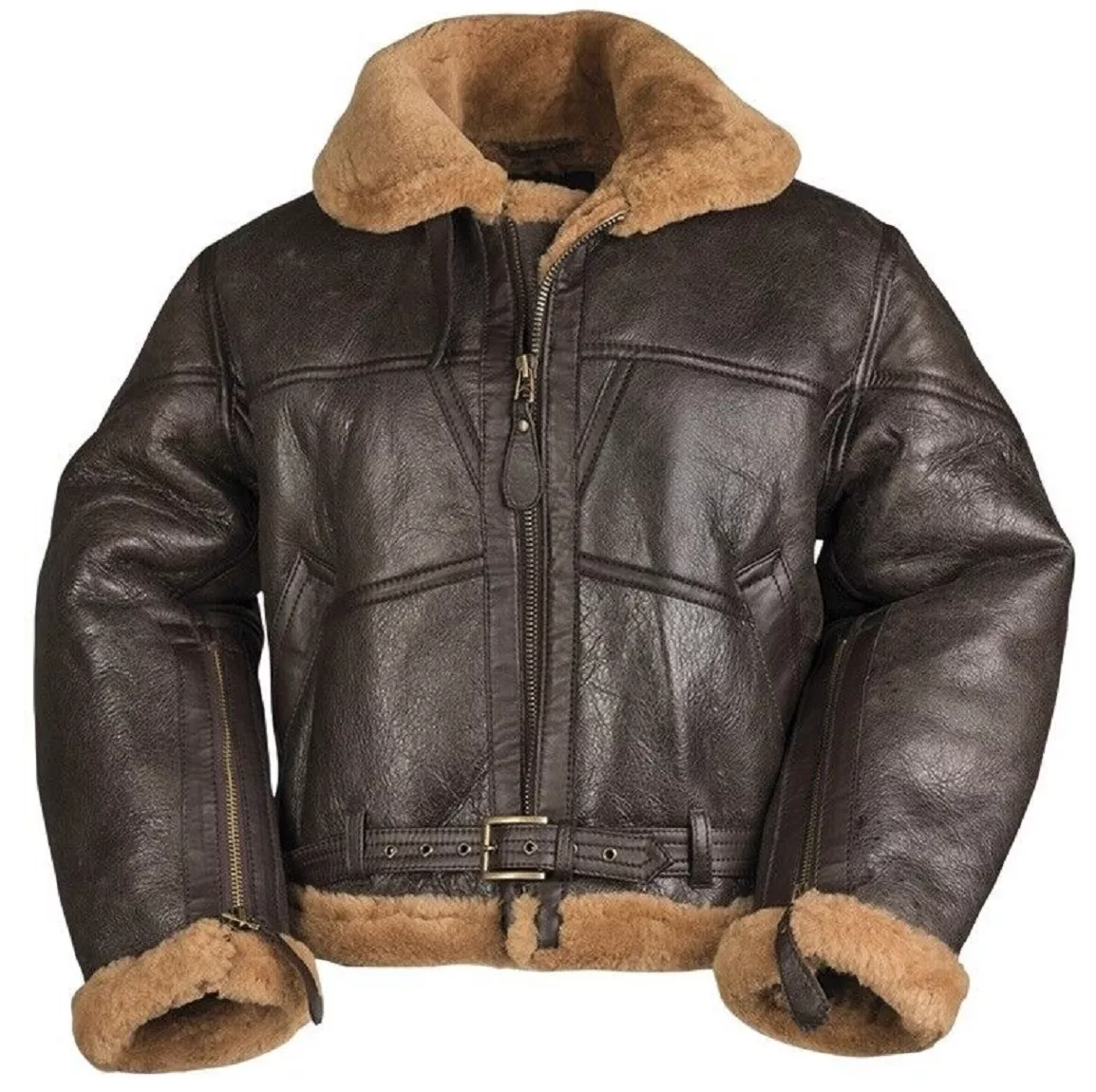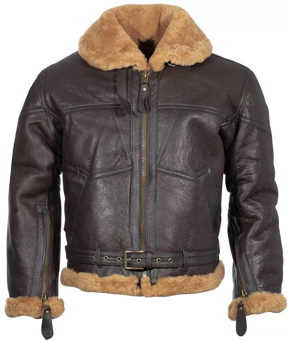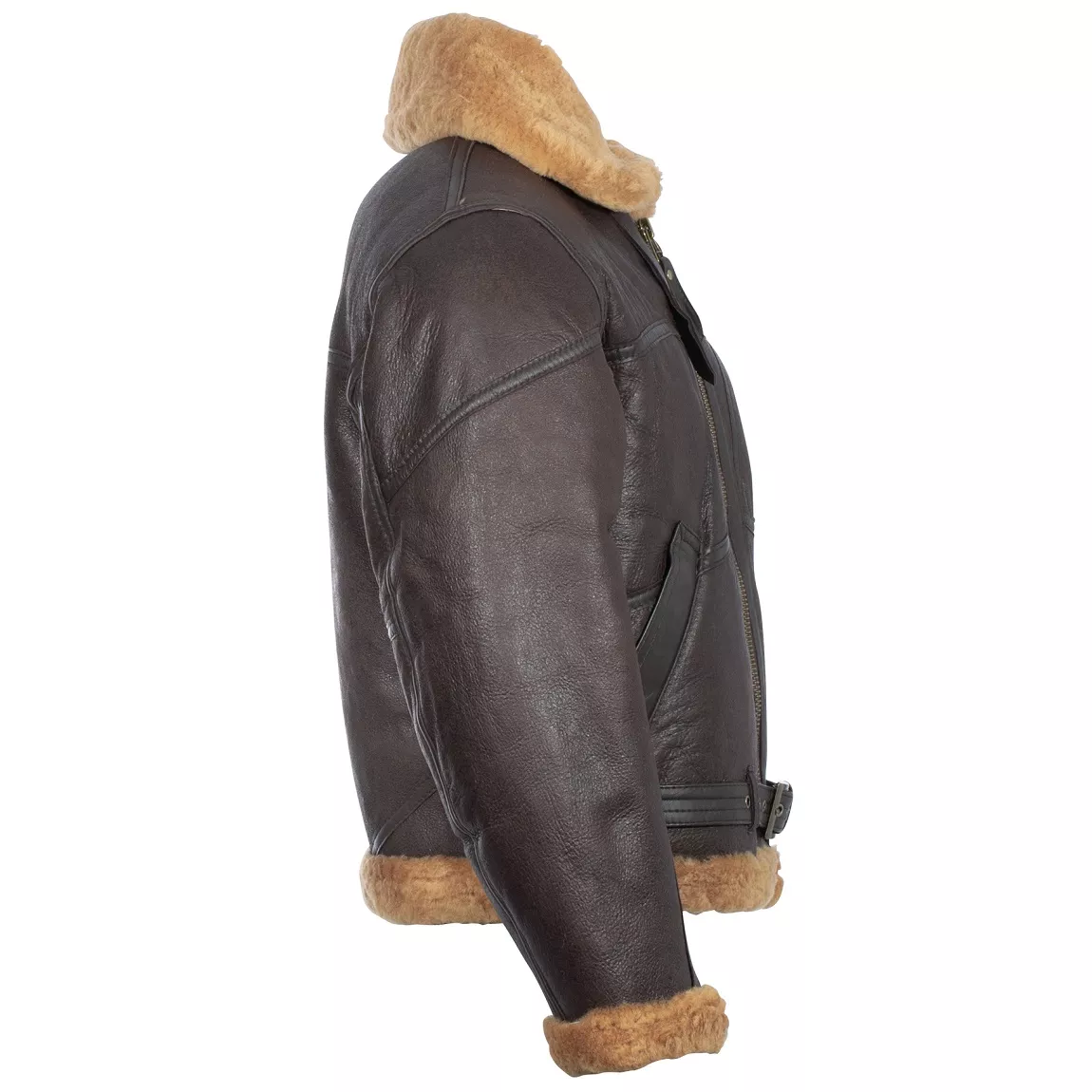 Kvalitní a odolná, velmi teplá, pánská kožená pilotní bunda RAF BOMBER. Je vyrobena z pravé ovčí kůže, podšívka z ovčí vlněné střiže. Vyrobena dle vzoru bundy, která byla používána piloty britského královského letectva RAF během II. světové války. Zapínání na zip, dvě vnější šikmé kapsy. Stahovací řemínek v pase a na límci. Manžety rukávů se zipem. Materiál: vnější-100% ovčí kůže, podšívka-100% ovčí vlna. Doporučená údržba: prostředek na ošetření kůže.
